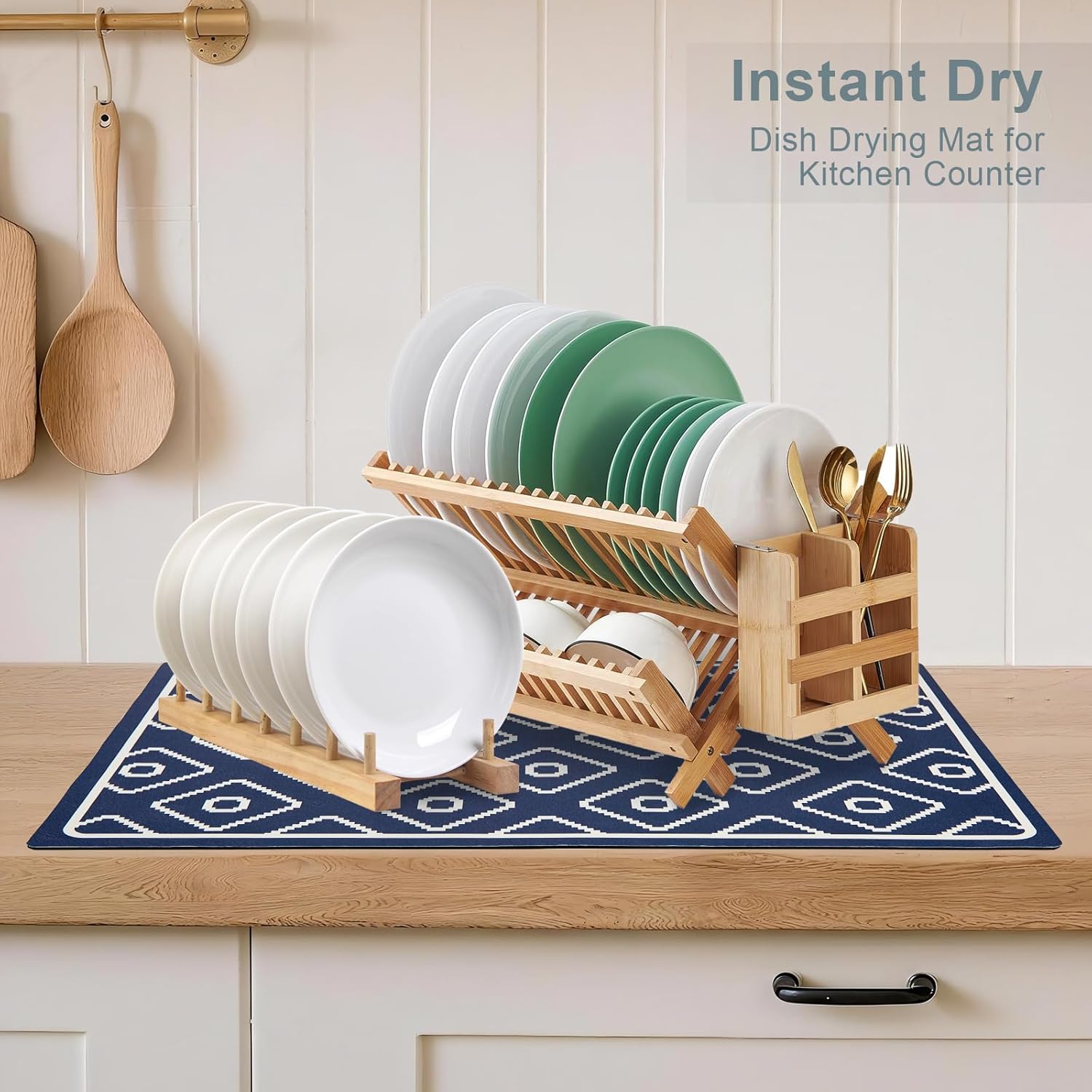 - Stylish and Versatile - Our dish mat, with its unique and chic designs, effortlessly complements your home decor, giving your countertop an attractive and cozy look. Measuring 19.6 x 11.8 inches, it suits both your coffee station and dish-drying area, and it can be tailored to fit any spot where you need water absorption, too.