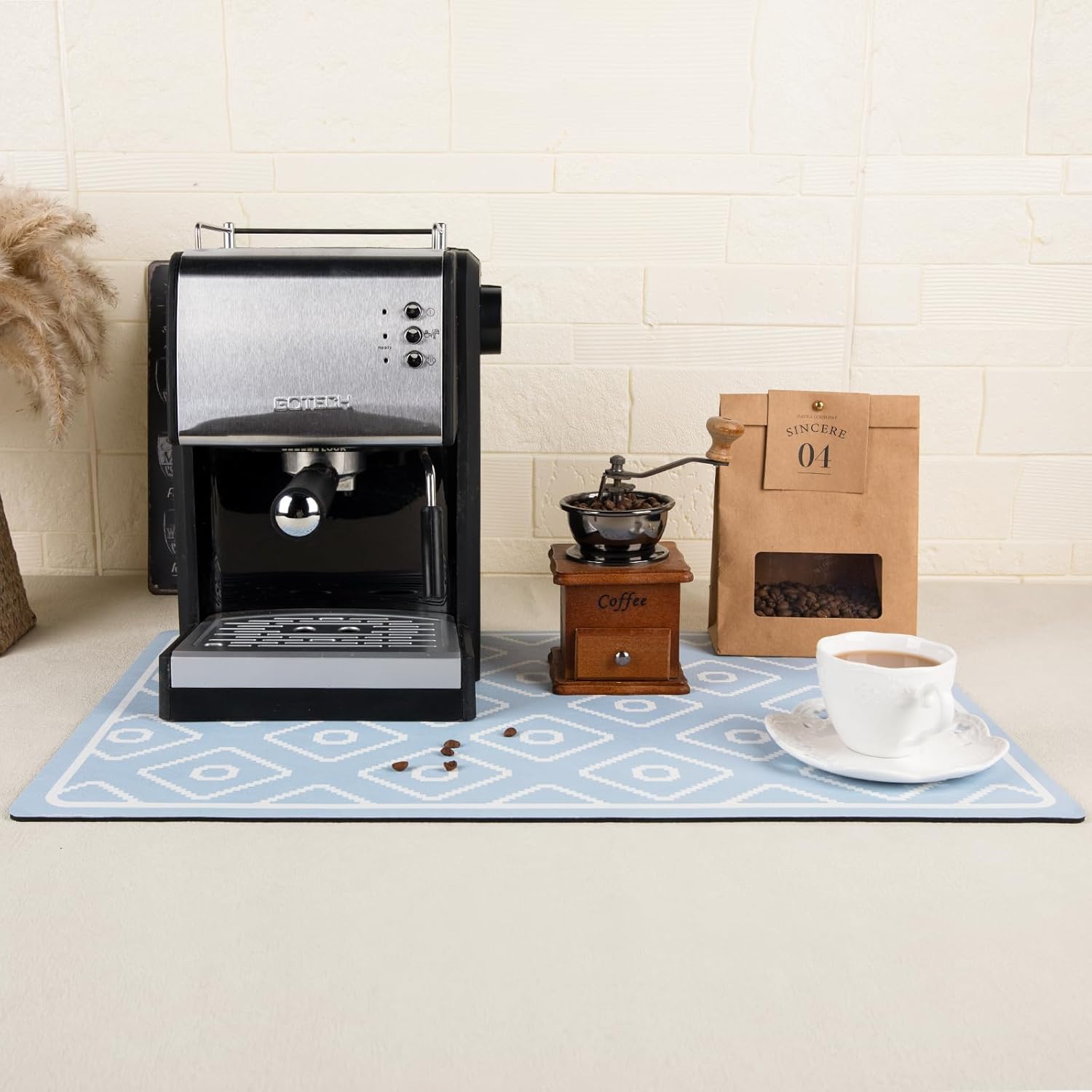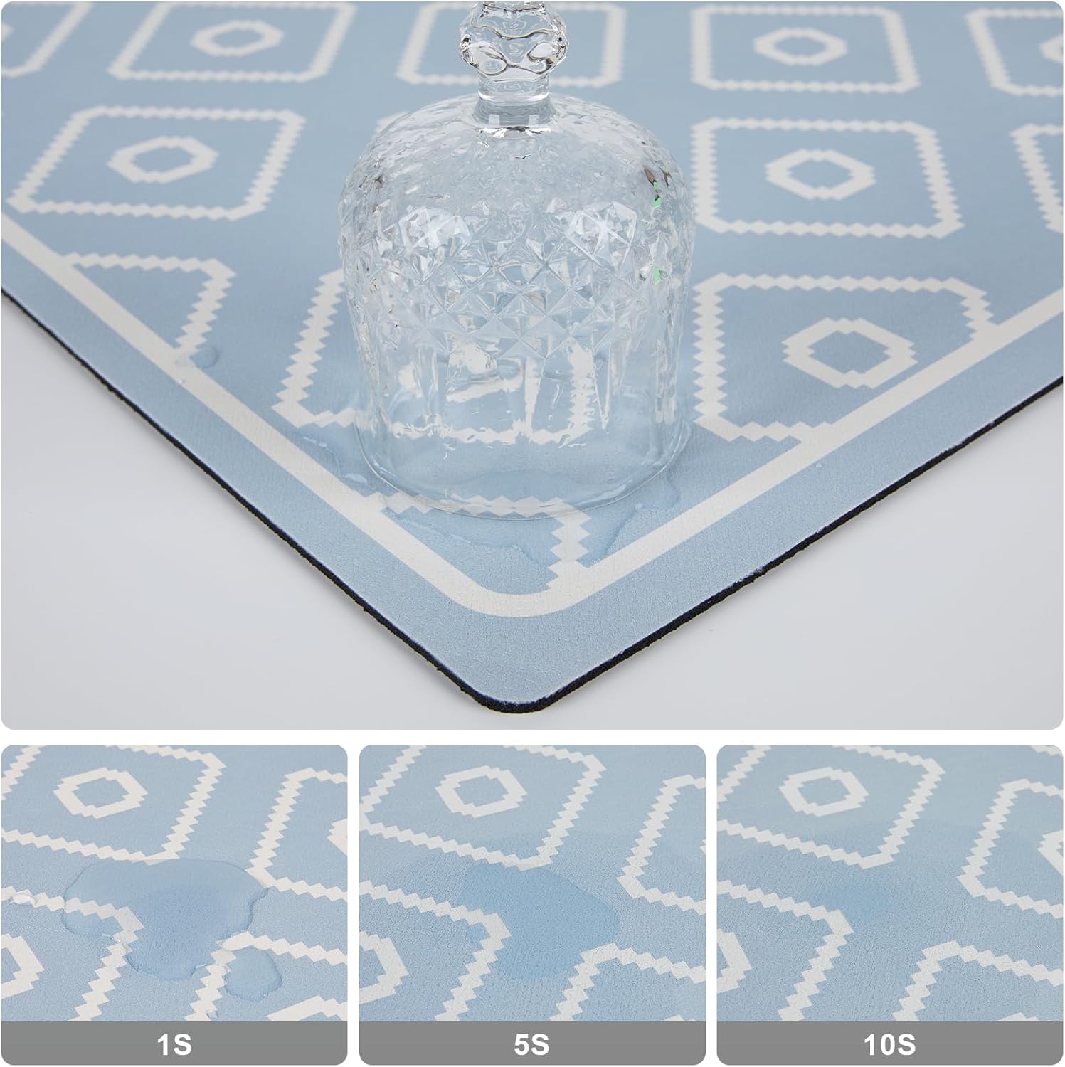 SUEH DESIGN Dish Drying Mat, Absorbent Coffee Mat 19.6 x 11.8 in Quick Dry Kitchen Drying Dish Drain Mat for Kitchen Counter Coffee Bar, Blue