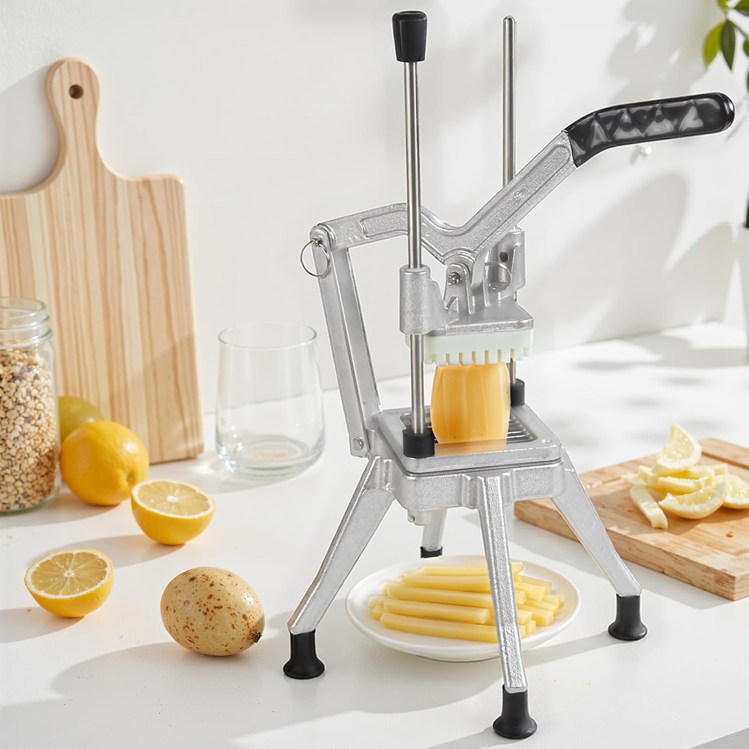 - 【Professional 4-Blade System】Our french fry cutter includes four stainless steel blades (1/2", 3/8", 1/4", 6-wedge) for perfect fries, salad cubes, and fruit wedges. Create restaurant-style presentations in seconds.