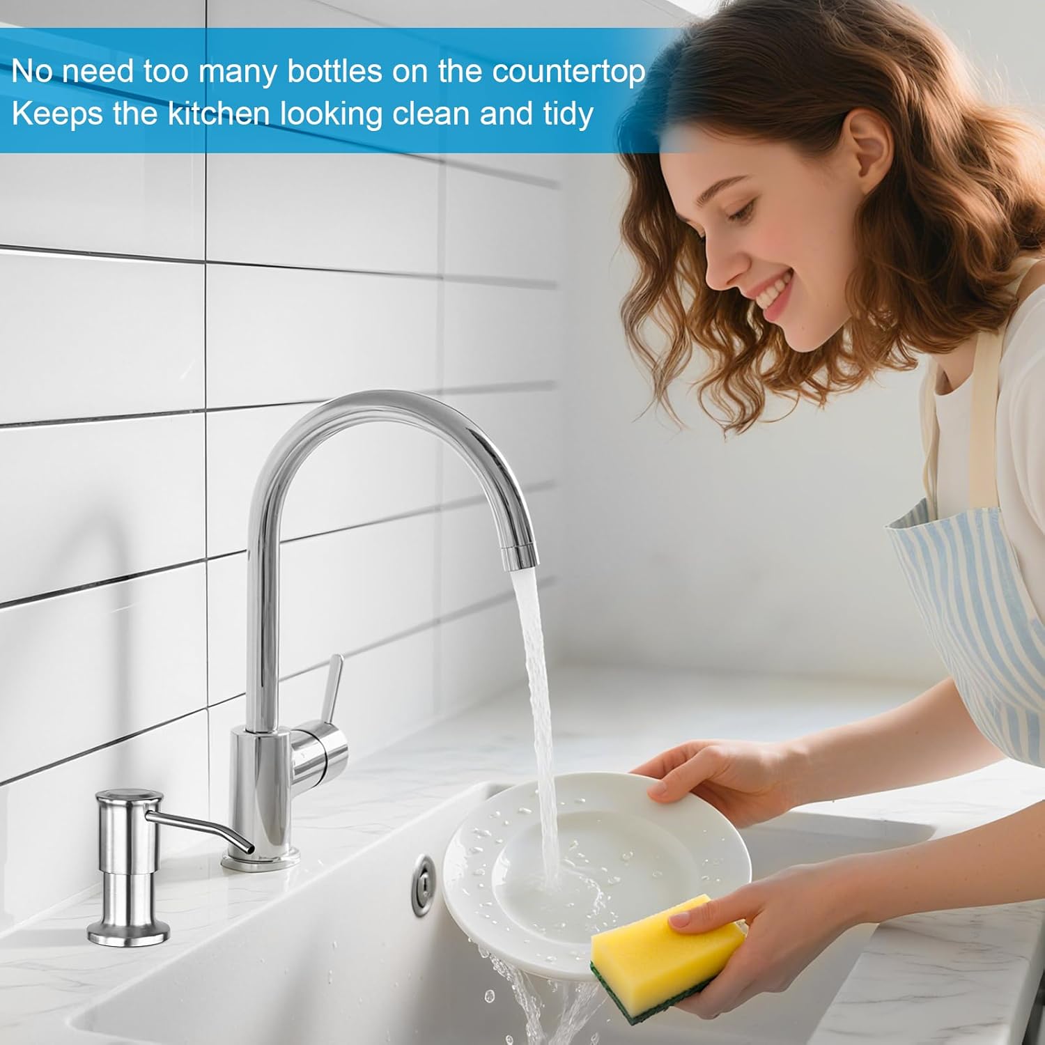 - No Filling Frequently: No more crawling under the sink. Our Soap Dispenser for Kitchen Sink comes with a 47” tube that plugs directly into a large dish soap bottle, saying goodbye to frequent refills.