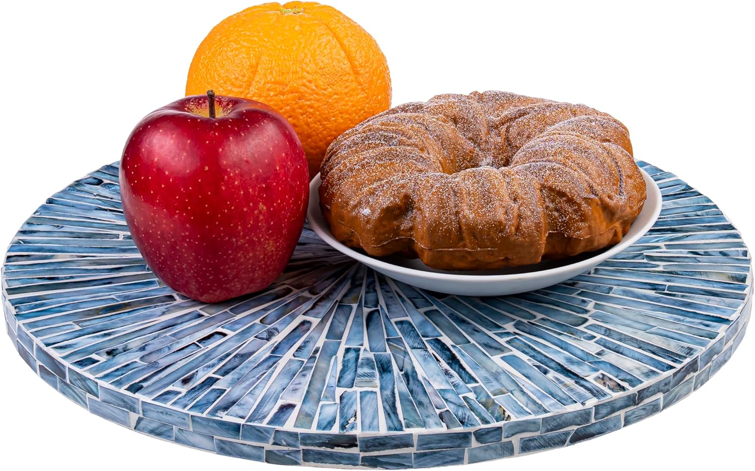 PEMAR Mother of Pearl Lazy Susan for Countertop Table (Blue Starburst, Standard (D12.6))