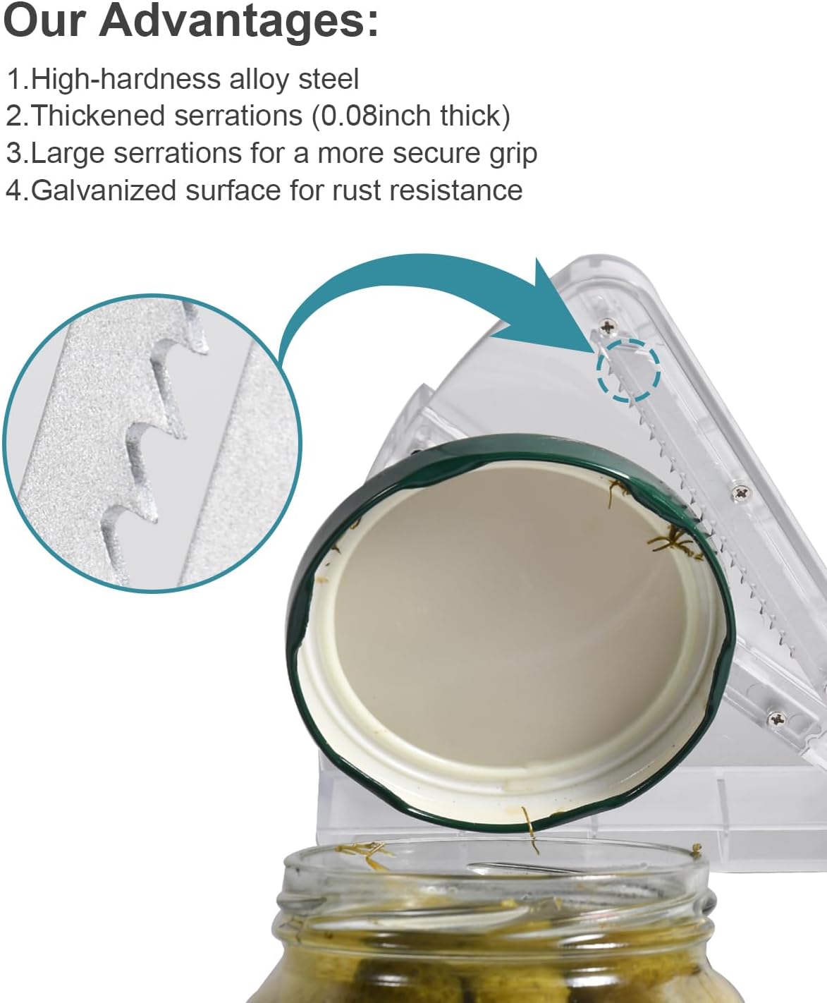 - 💖Our Advantages: This jar opener is made of high-quality food-grade PC material, with a jar opener gripper featuring 0.08inch-thick high-hardness alloy steel teeth. This ensures the lid opener won’t slip, making it a reliable kitchen gadget