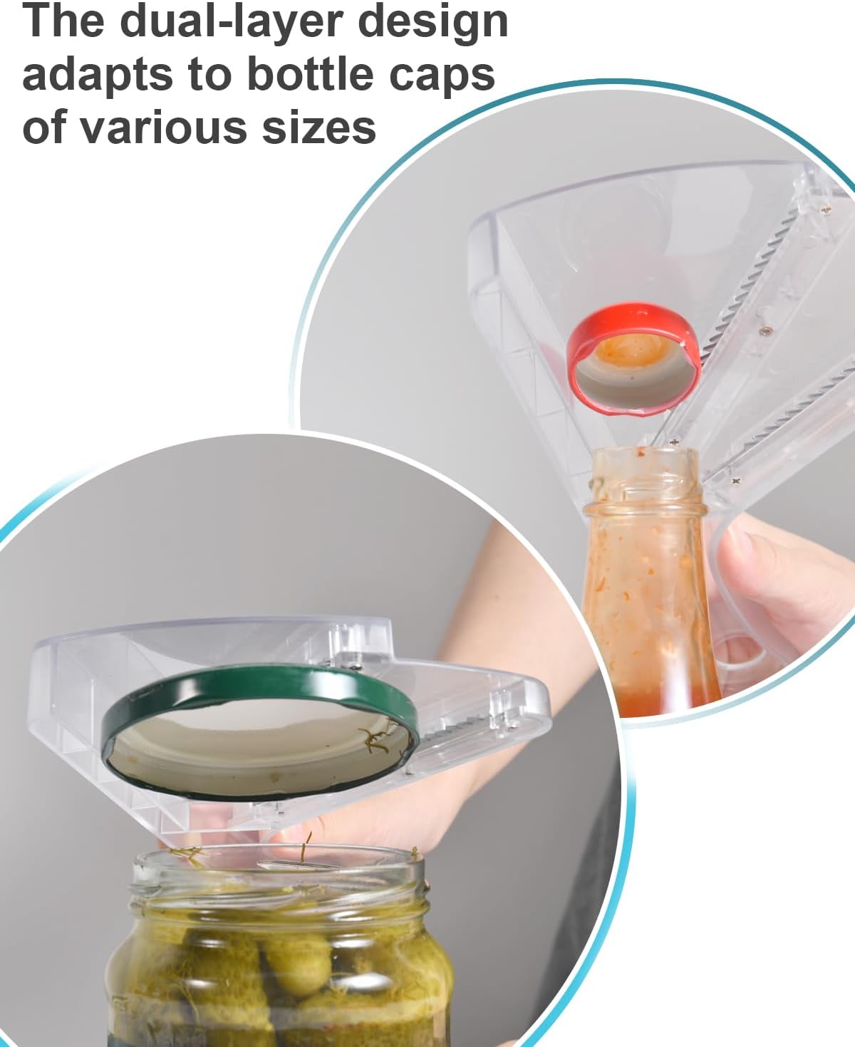 - đź’–Multi-Purpose: This jar opener features a double-layer design, suitable for bottle caps of different sizes. The jar opener can open lids up to 5 inches wide and as small as drink bottle caps, making it an excellent kitchen accessory