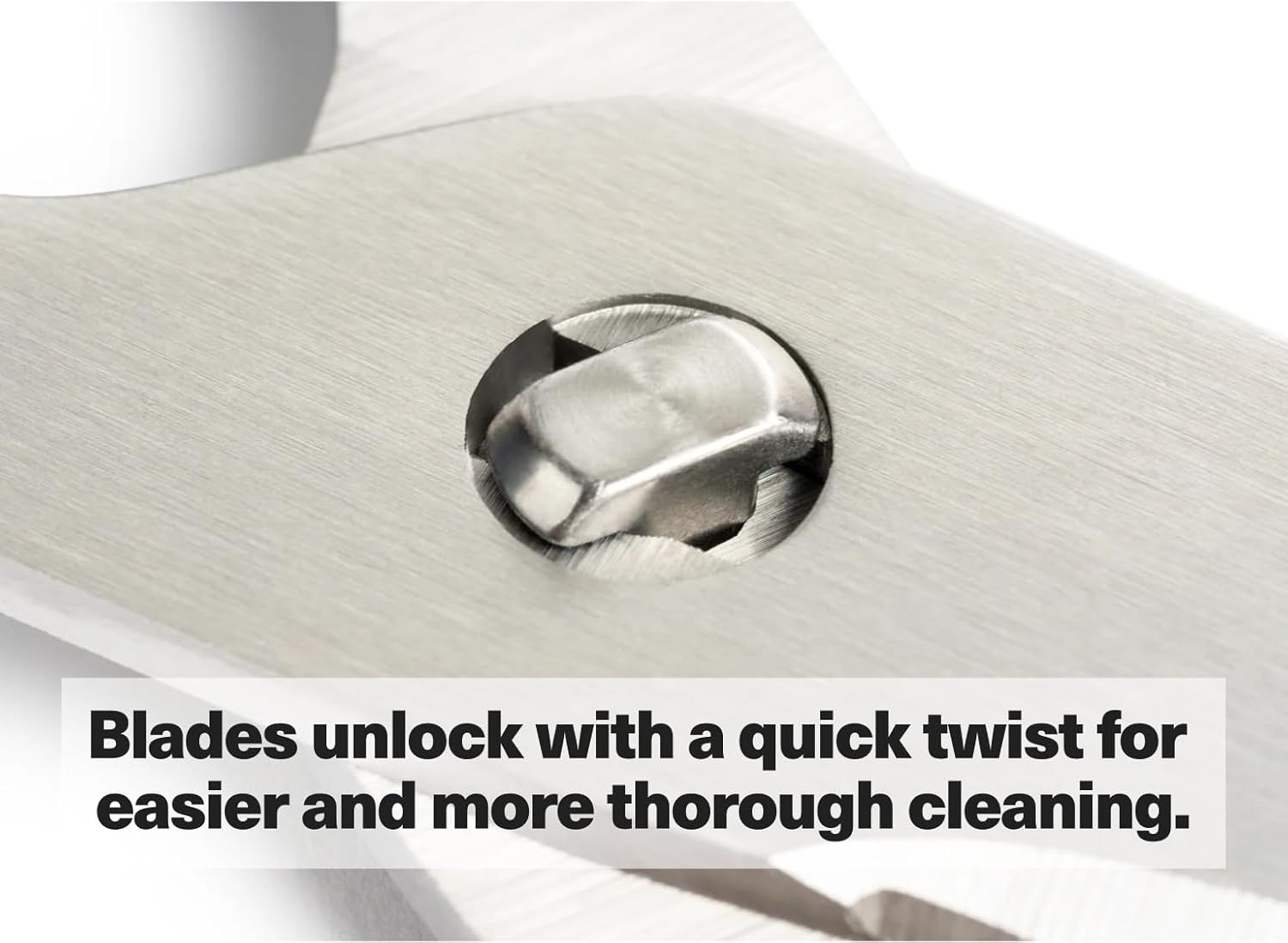 - Effortless Cleanup: The genius lies in the details. Our kitchen shears effortlessly come apart, allowing for meticulous cleaning, reaching every nook and cranny which helps elimiate cross contamination and other foodborn illnesses.