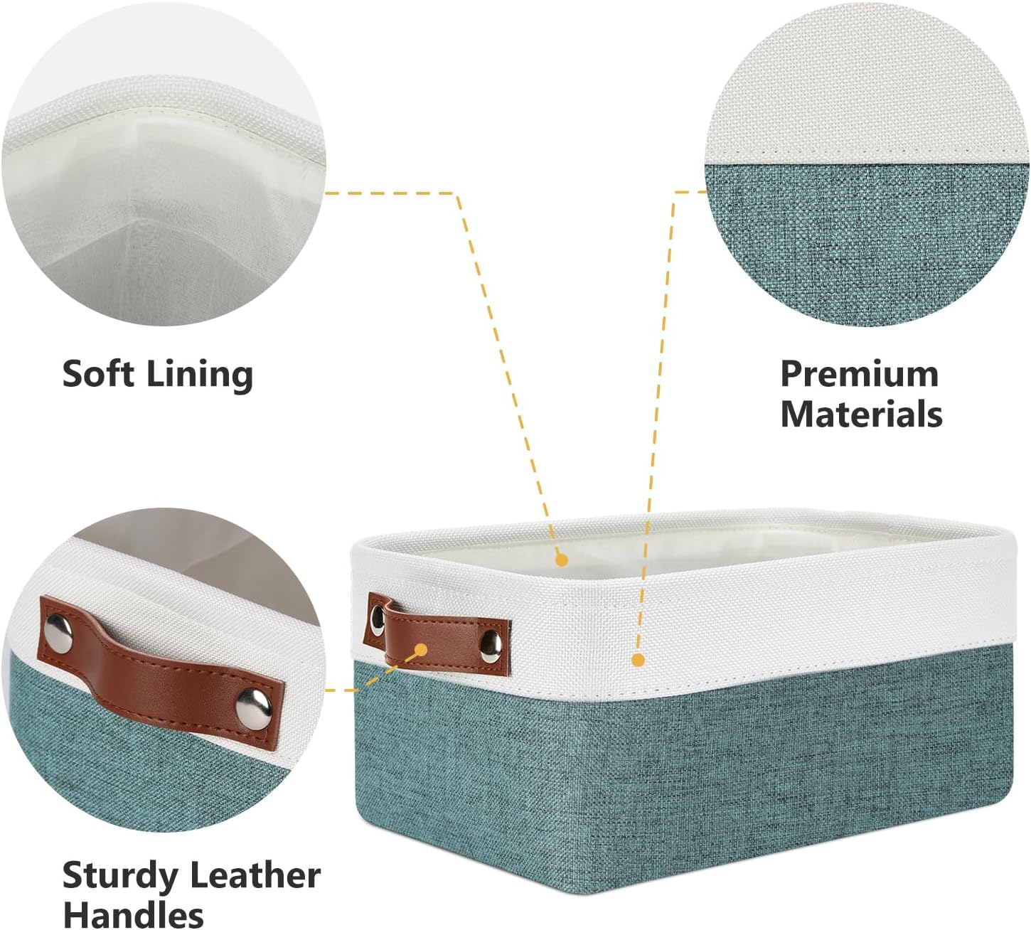 DULLEMELO Set of 6 Small Baskets for Organizing, Small Fabric Storage Bins for Storage, Collapsible Storage Bins with Handles for Shelves, Closets (11.8"x7.9"x5.1", White&Deep Green)