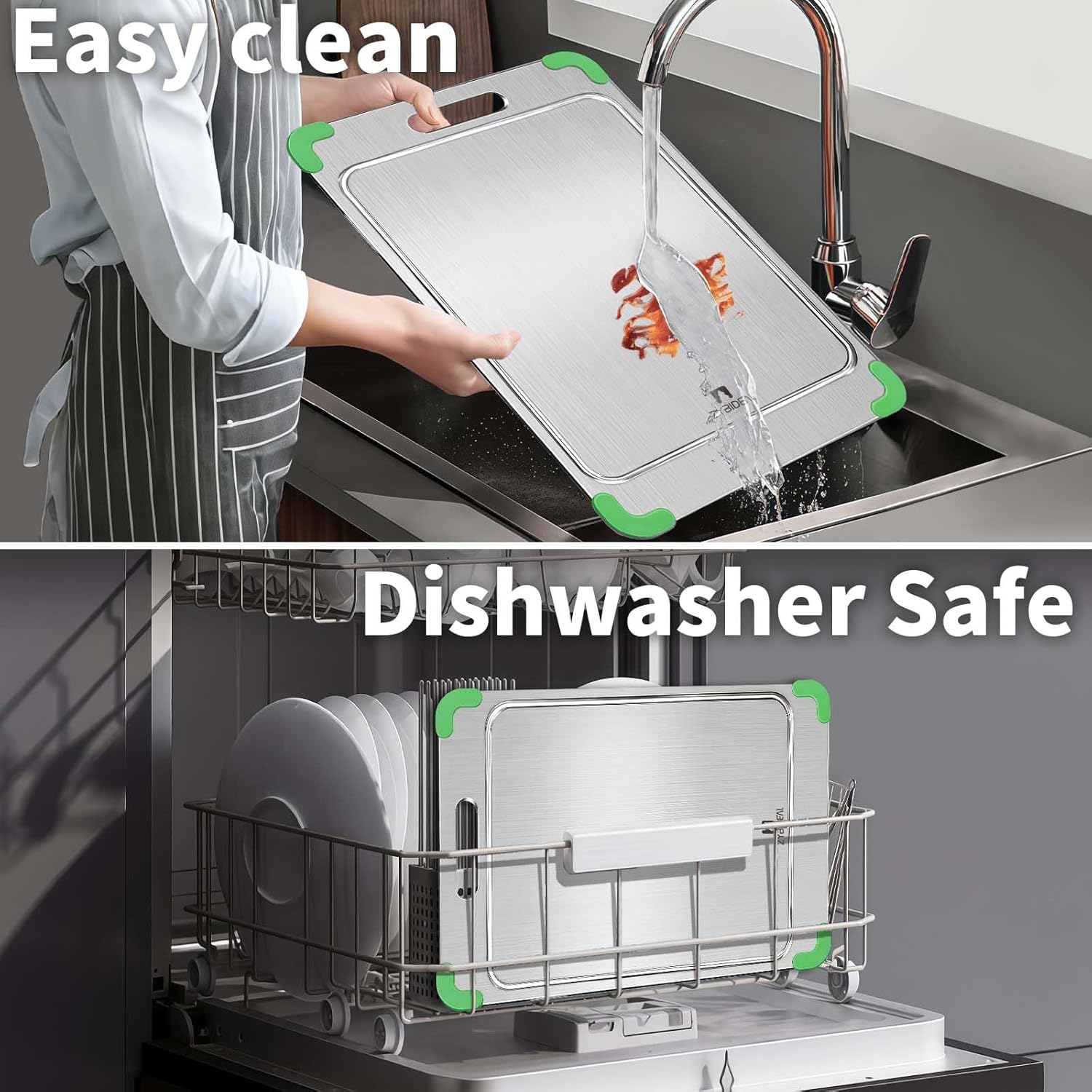 100% Pure Titanium Cutting Board with Grooves, Update Double Side Titanium Chopping Board, Silicone Anti-slip Stainless Cutting Boards for Kitchen 12 * 18 IN, Green