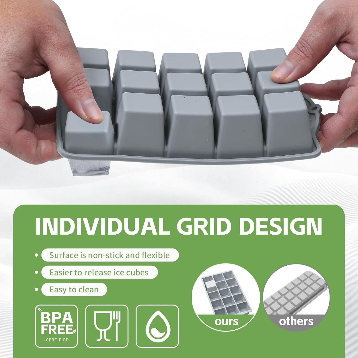 - 【Flexible & Easy-Release Ice Trays 】Our upgraded ice tray with lid features a sleek, non-stick surface for easy release. Just squeeze or push, and ice cubes pop out smoothly.Ice cube trays for freezer with lid are ideal for cocktails, smoothies, or everyday drinks, making your ice-making quick and frustration-free.
