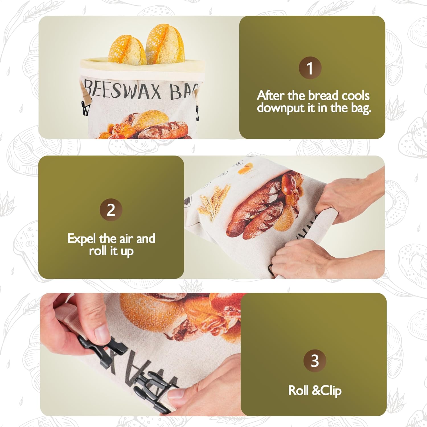 - All Natural Beeswax Blend for Long-Lasting Freshness -Beeswax Bread Bags Crafted with a blend of natural beeswax, jojoba oil, and tree resin, these 100% Linen Moisture-proof Lined bags lock in moisture to keep bread soft and flavorful. Ideal for storing sourdough, bagels, or baked goods in the freezer or refrigerator. Lightweight and portable,Designed to accommodate both small and large loaves—perfect for home, picnics, and travel