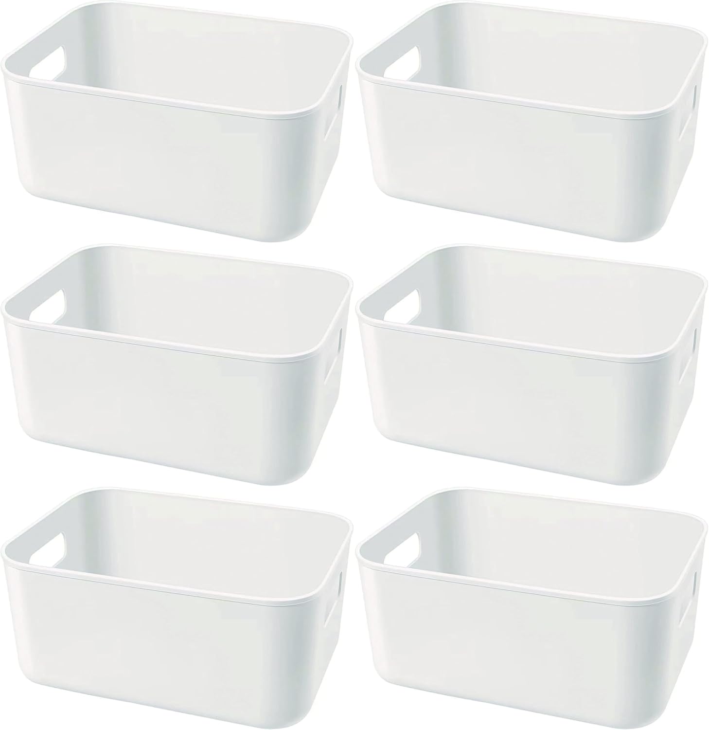 Set Of 6 Plastic Storage Bins,Versatile Kitchen Pantry Organization and Storage,for Plastic Storage Container Under Bed,Under Sink Bathroom Organizer (White, 6 Pack Small)