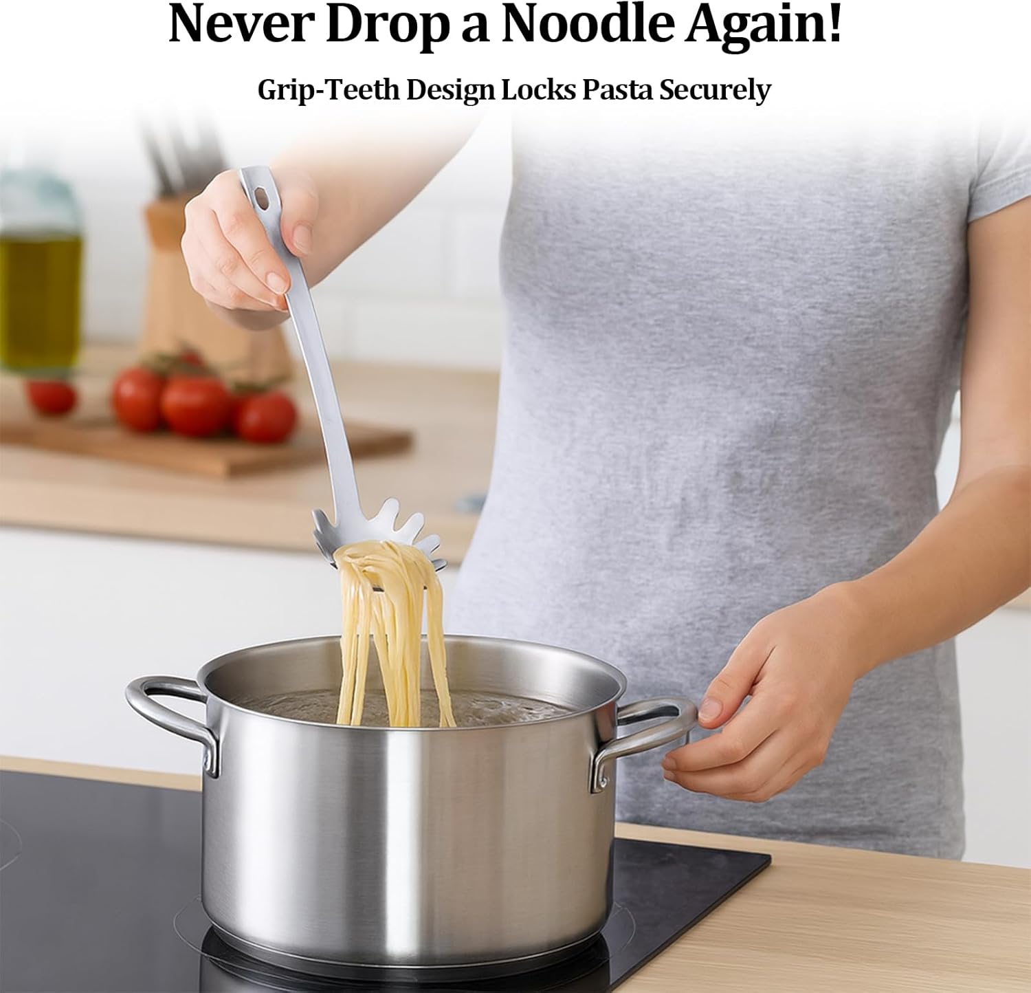 - Multifunctional Pasta Tool: Uses as a spoon, fork (with serrations), and strainer. Perfect for making pasta, lasagna, ramen, or stirring sauces. Its 12-inch length effectively protects your hands from steam.