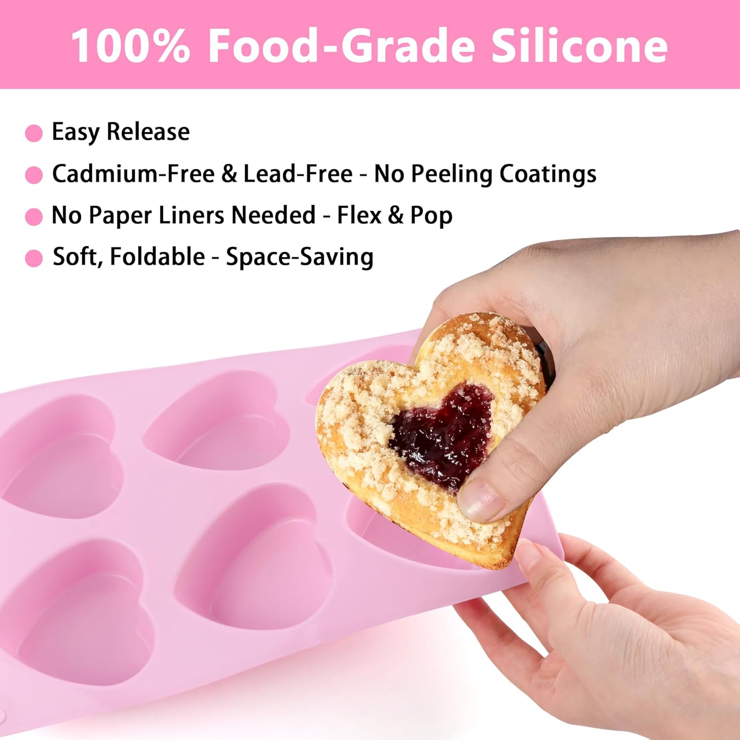 - Made from 100% food-grade silicone, this muffin pan is safe and durable. Its reinforced frame ensures stability during use, preventing bending or spills