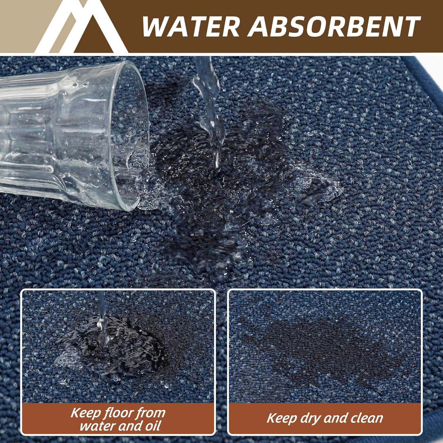 COSY HOMEER Kitchen Rugs Non Slip Washable 24"x36"+24"x60" Absorbent Kitchen Mats for Floor Stain Resistant Kitchen Runner Rug Sets of 2 Kitchen Floor Mats for Sink,Navy Blue