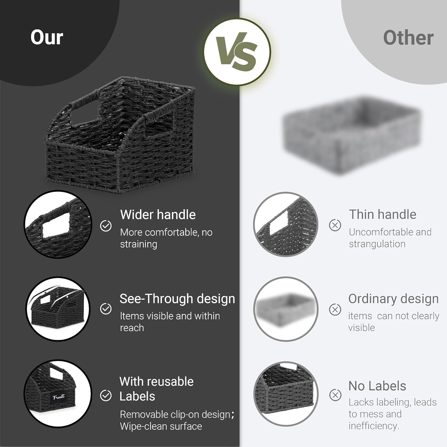 - Handwoven kitchen baskets for storage feature 2 handles for secure and easy carry.Smart options for extra storage in a living area, kitchen or bath.