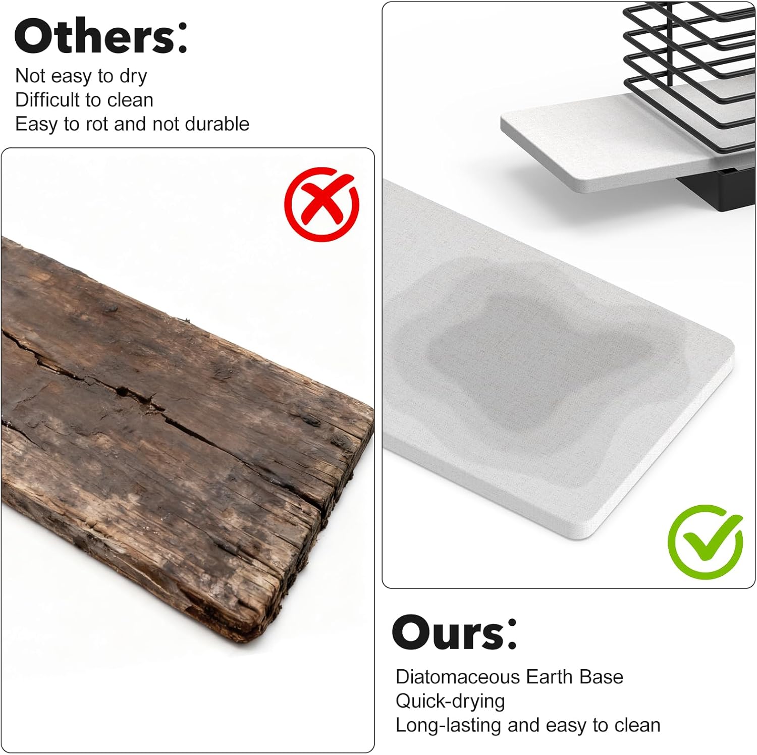 - Rapid-Dry Diatomite Base: This cooking utensil holder features a diatomite base that rapidly absorbs water, keeping your countertop dry and saving you the hassle of constant wiping, while storing your cooking tools in a clean, orderly fashion.
