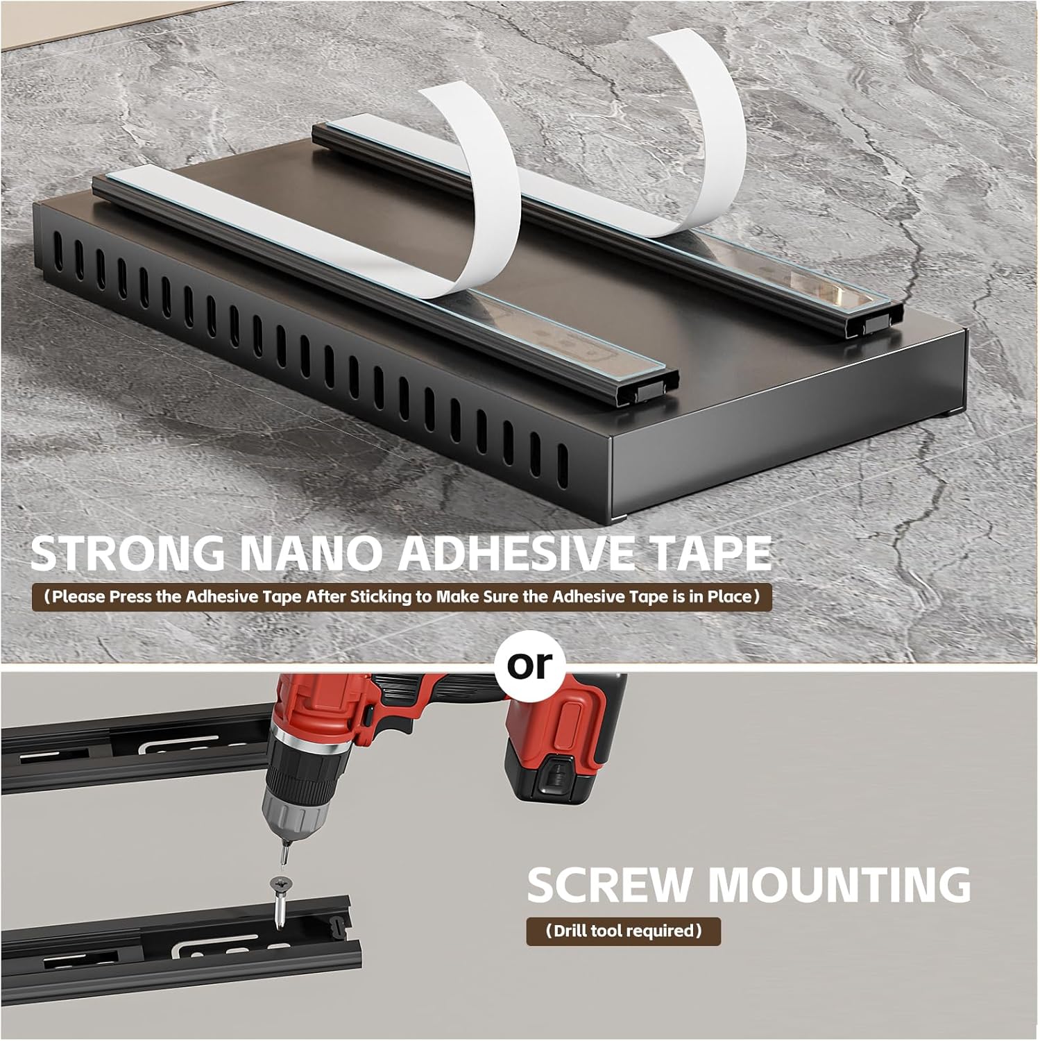 - 2 Mounting Options —— This pull out cabinet organizer has two different installation methods: no-drill installation and screw-drill installation, which can be installed according to your needs (if you have the need to store heavy objects, drilling can provide better stability), and the body of our pot racks can also be removed by wrenching on the bottom slide catch after drilling, which is convenient for the secondary remodeling of the cabinets
