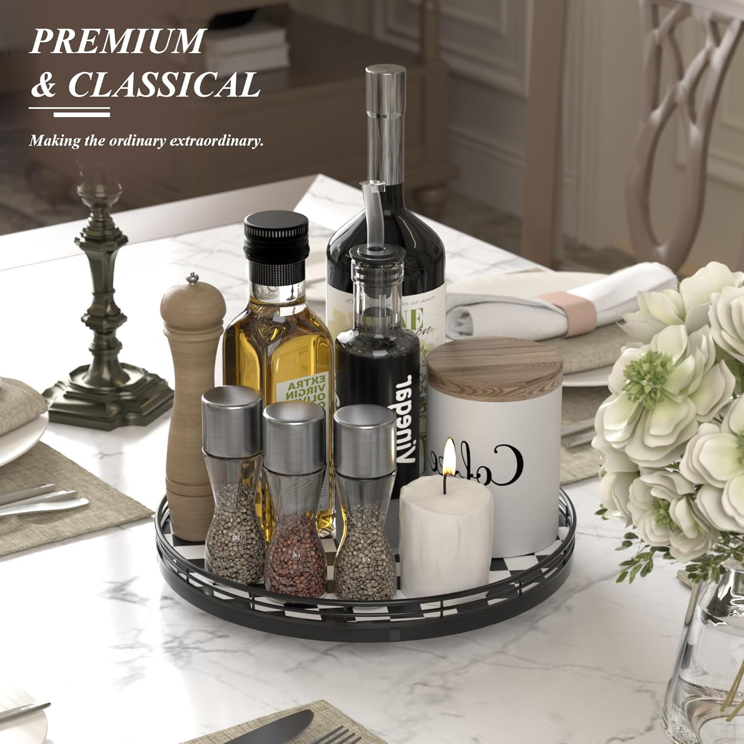 - QUALITY CRAFTSMANSHIP & STYLE – Built with a durable checkered oakwood base and iron frame. From a black check serving tray to a cute lazy susan for table top, it blends seamlessly with modern pottery barn decor styles.