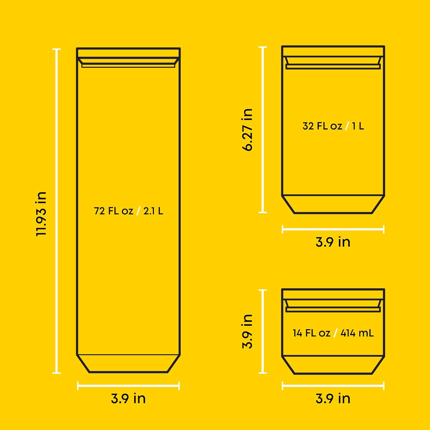 - SET OF 7 GLASS CANISTERS: Upgrade your kitchen with 7 durable borosilicate glass food storage containers that stack like a dream! Each set includes 1x 72oz, 2x 32oz, and 4x 14oz canisters. Functional for everyday organizing and use, yet effortlessly stylish.