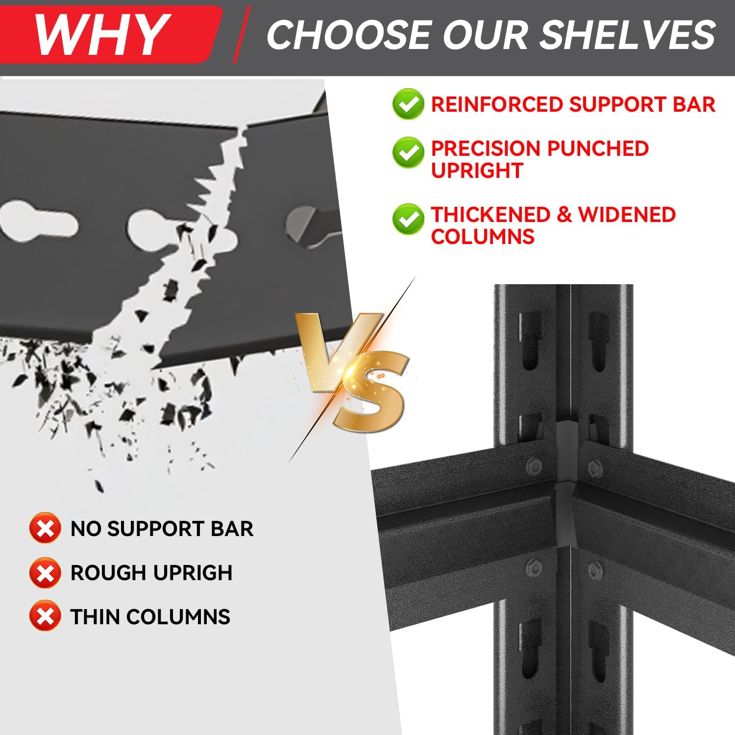 - Rust-Resistant Steel Construction: Crafted from powder-coated steel, this basement storage shelves resists rust, scratches, and corrosion, ensuring long-lasting performance in a variety of environments, including garages, workshops, and warehouses