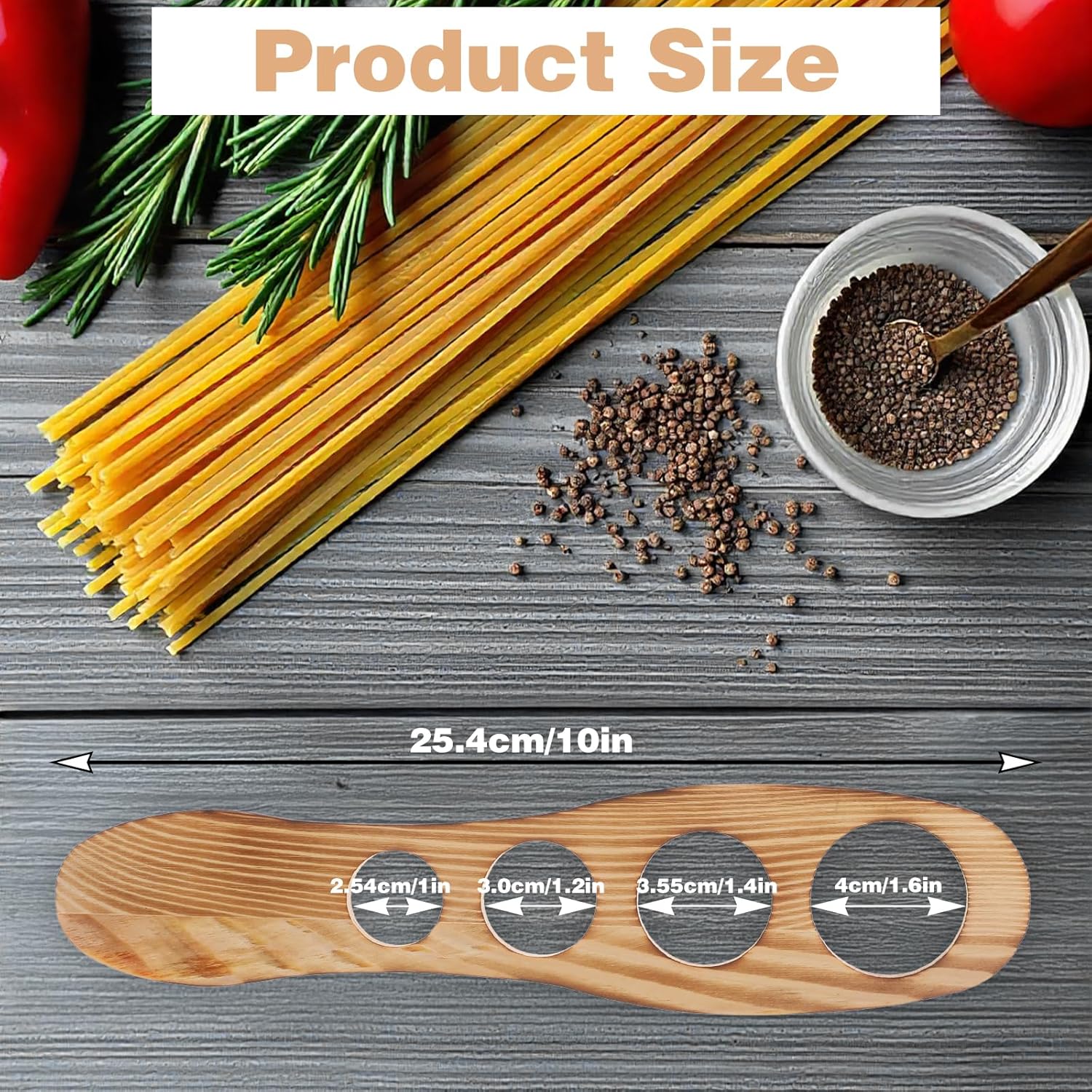 Spaghetti Measurer Tool, Wood Pasta Measuring Tool with 4 Holes, Quick Spaghetti Measuring Tools for Kitchen Cooking, Kitchen Accessories (9.96 X 2.36 Inch)