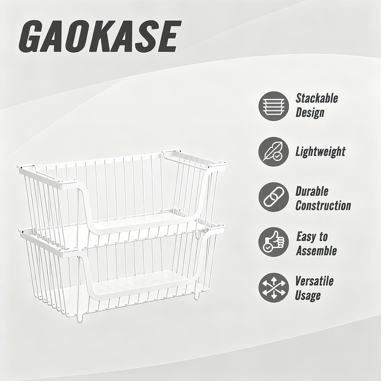 - (100% AFTER SALES SATISFACTION): GAOKASE 4 Pcs Stackable Wire Baskets for Pantry Organizers and Storage is carefully crafted by our design team, combining space-saving, rust-resistant stainless steel metal and hygiene. Tidy home life design.. If you have any installation or product problems, you can always contact us via our email or Amazon backstage, our professional customer support team is here to help. Please feel free to buy.