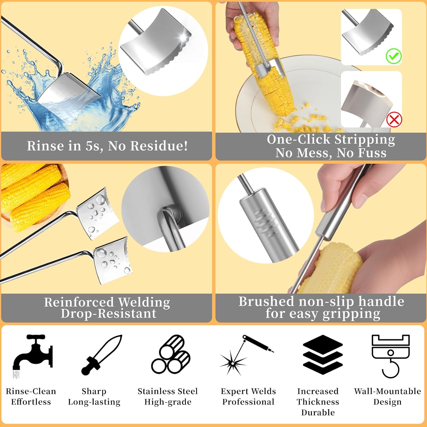 - Professional Corn Peeler with Long Handle: Features an extended stainless steel handle and double-sided blade for comfortable grip and easy, butter-smooth operation.