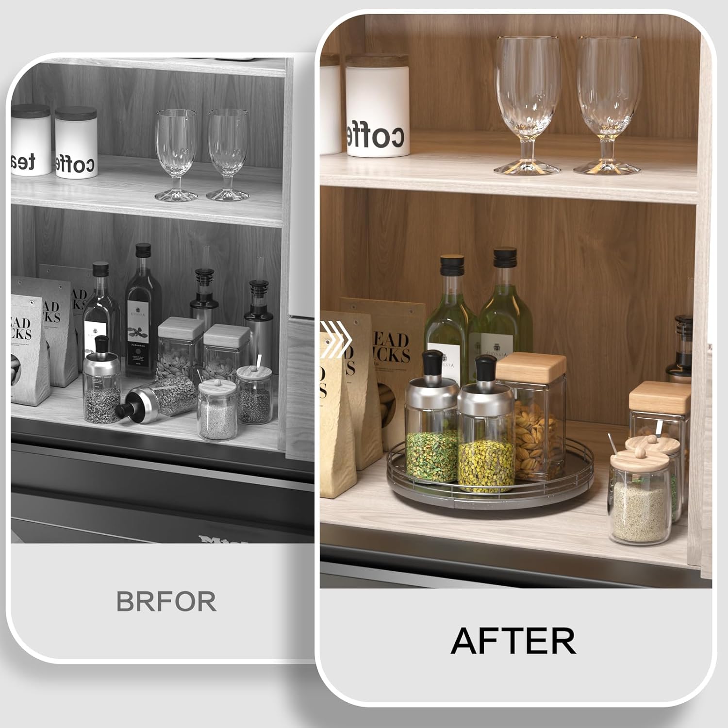 - Thoughtful Design: The turntable silver tray features a smooth and silent 360°rotation; Bottom slip-resistant pads for stability and protect your countertop from scratches; Raised edges on each organizer tray to keep items from falling out; Easy to use, no installation required