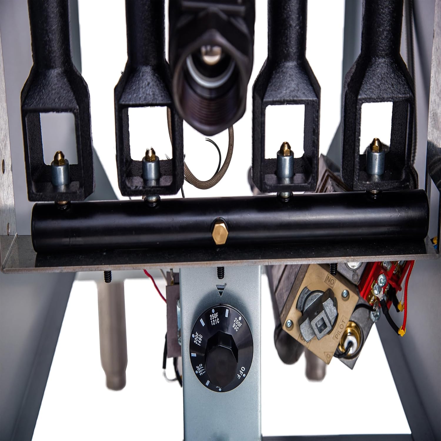 - Adjustable Temperature Control - The temperature of this fryer can be adjusted within the range of 200°F to 400°F (93°C to 205°C). Once the set temperature is reached, the thermostat automatically shuts off the gas to the burner. This feature allows you to set the optimal frying temperature for different types of food. The thermostat control system ensures excellent performance and quick temperature recovery, guaranteeing that your food is cooked to a perfect, crispy finish.