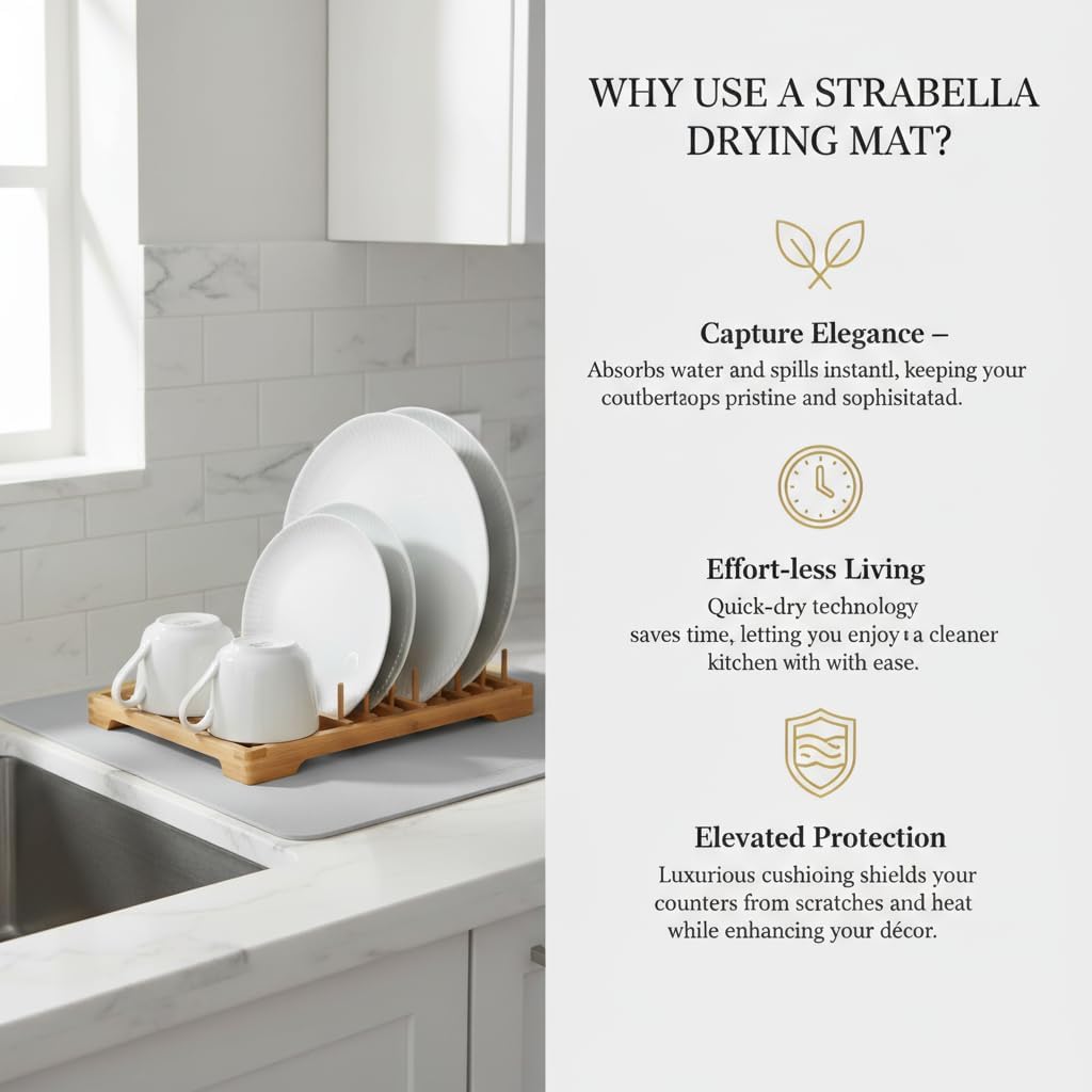 - MULTI-PURPOSE: Elevate your kitchen experience with our Multi-Use Dish Drying Mat. Its versatile design makes it perfect for drying dishes, and glassware, or even as a protective surface for countertop appliances. Streamline your kitchen tasks with a single, versatile solution.
