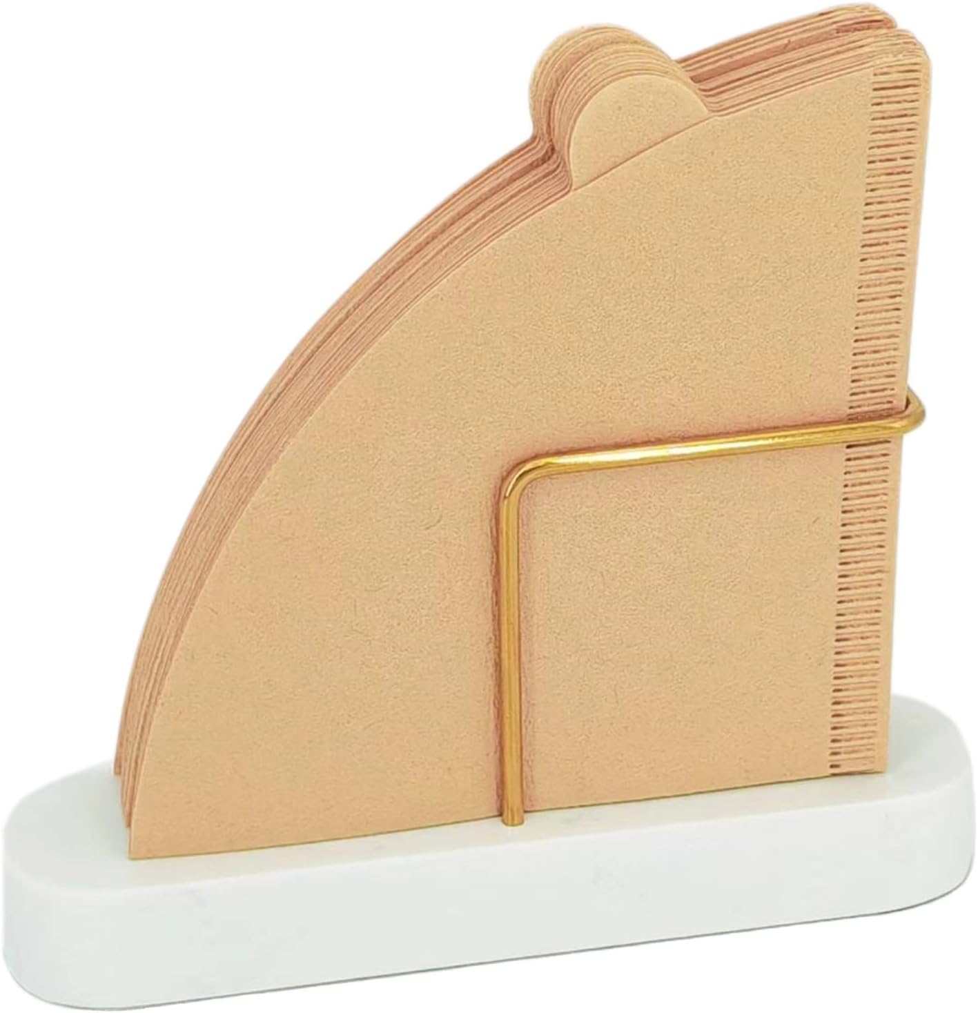 Cone Coffee Filter Holder for Counter, Coffee Filter Storage Container for Cone Paper Filters Size #01 & #02, Marble Base with Non-Slip Pad (White)