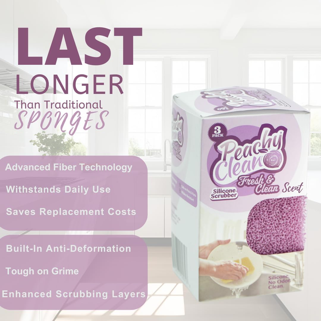 Peachy Clean Silicone Dish Sponge Scrubbers, Fresh & Clean Scent, Non-Scratch, Odor-Resistant, Durable Dish Sponges for Kitchen