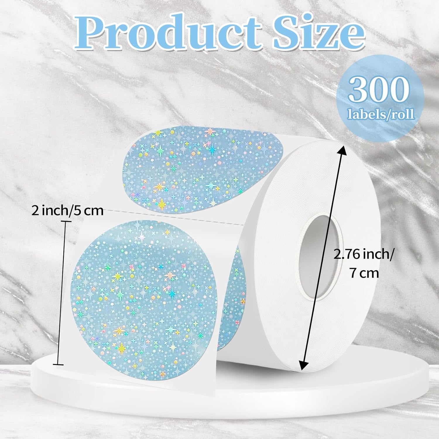 2''Holographic Thermal Label,Round Self-Adhesive Direct Thermal Label,Thermal Stickers for DIY Logo Design,Name Tag (300/Roll Blue Starry Sky
