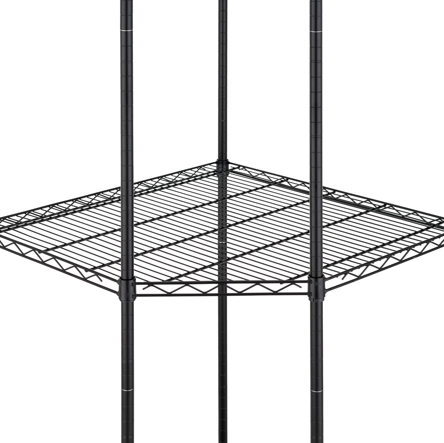- STRONG, ADJUSTABLE SHELVES: The powder-coated black finish, steel poles and wire shelves ensure the durability and long life of the rack; Shelves are adjustable in 1" increments using slip sleeves to personalize the rack to your exact storage needs
