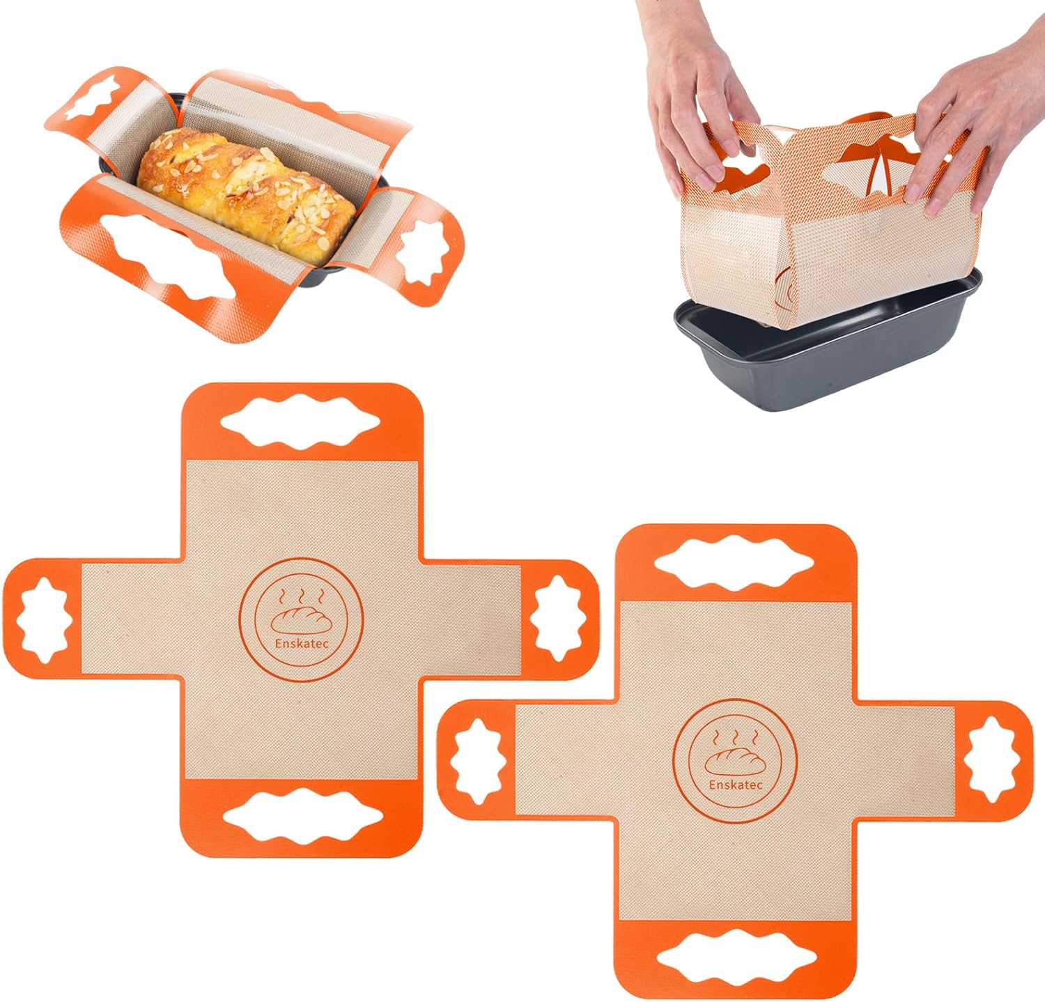 2 Pcs Reusable Silicone Bread Loaf Pan Liners, Food-Grade Silicone Bread Baking Mat with 4 Handles, Non-Stick & Heat Resistant Loaf Pan Lifters, Sourdough Sling for 9x5" or 1.5Lb Loaf Pans (Orange)