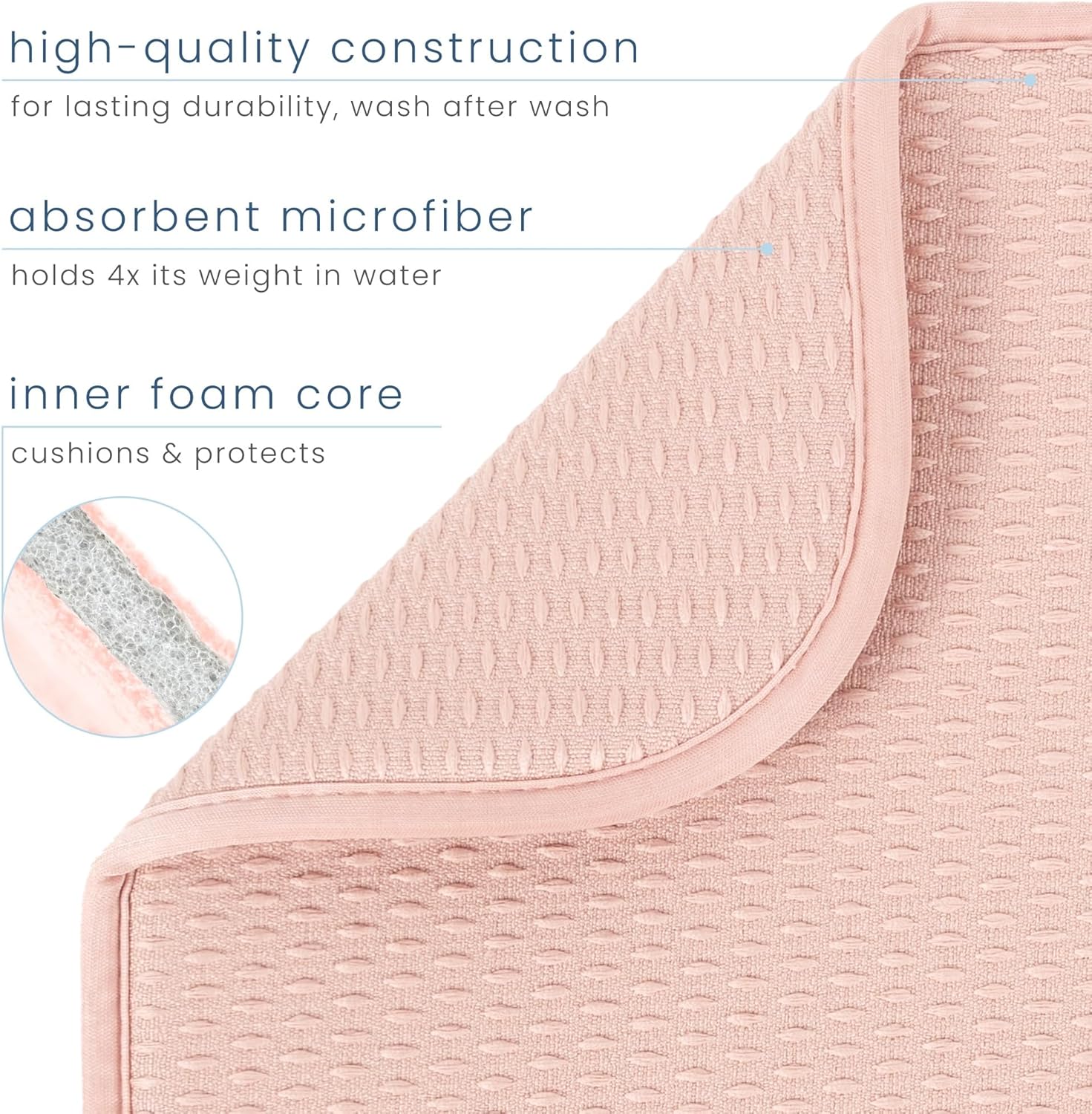 S&T INC. Dish Drying Mat XL, 18” x 24”, Absorbent Microfiber Kitchen Counter Mat, Drying Pad for Dishes, Utensils, Pots and Pans, Extra Large, Diamond Texture, Pink